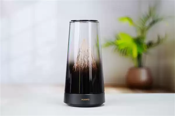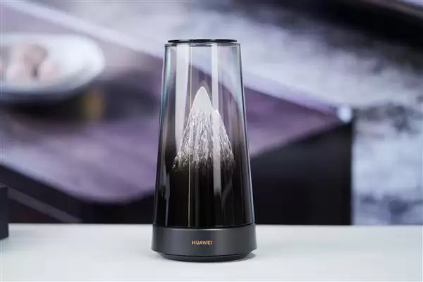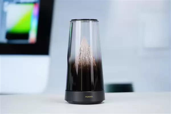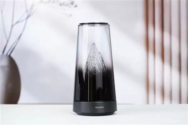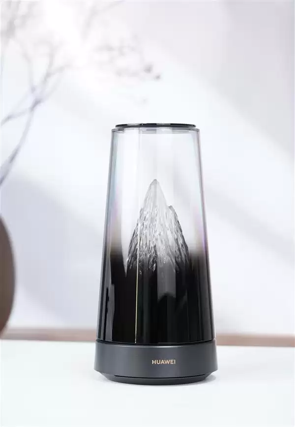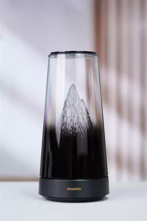 华为路由X3 Pro采用圆柱形机身设计,上半部分采用透明外壳,内部嵌入微缩雪山,可随日出日落明暗变幻,展现"日照金山"的景色。