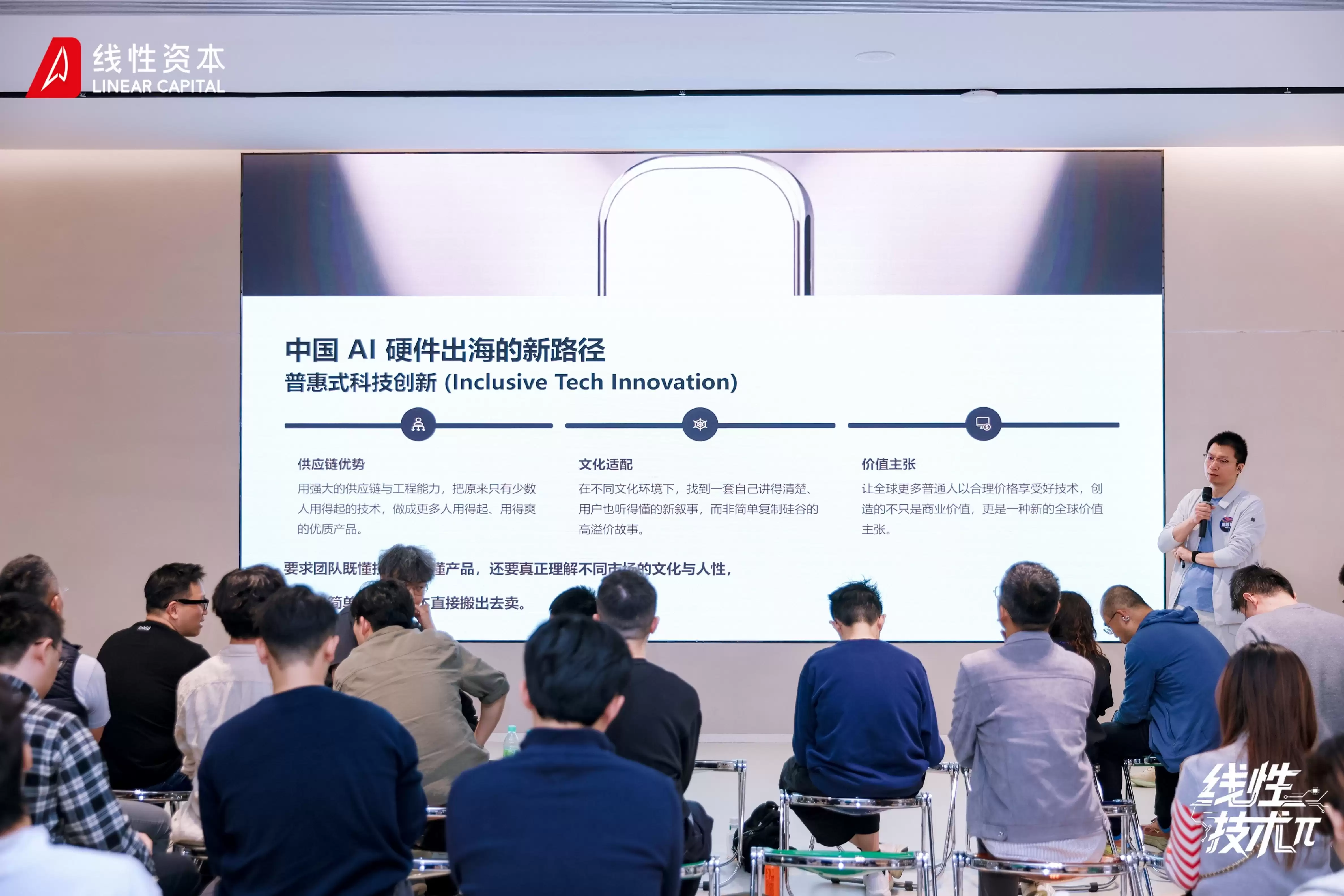 线性资本的资深总监董敦敏从投资人的角度分享了对AI硬件的见解。他认为,优秀产品需要同时满足场景、文化与人性三层逻辑。产品应"卖得动、用得顺、留得下",注重用户首次体验与长期依赖。董敦敏提到他会在早期询问创始人的关键问题:你是在打造一个功能,还是在雕琢一个能够被用户接受、或者能够打动用户的具体场景?"我们认为,好的产品必须是在具体的生活场景中真实成立的。"