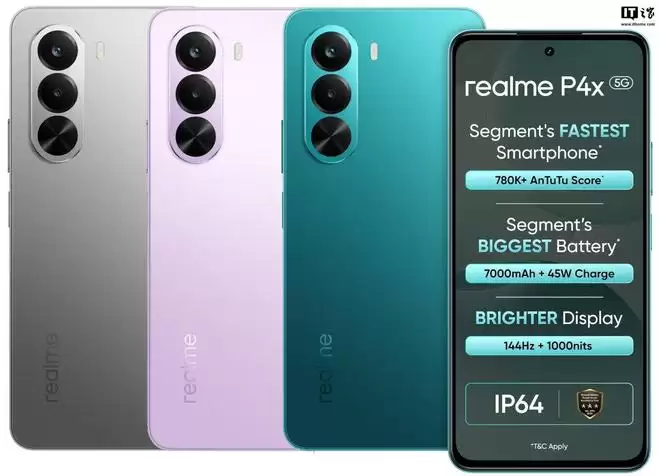 IT之家12月5日消息,realme 真我近日在印度市场推出了P4x 5G手机,这款新机定位中低端市场,搭载了联发科天玑7400 Ultra芯片,并配备了7000mAh的超大容量电池。