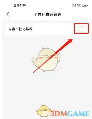 进入个性化推荐管理页面后,将【内容个性化推荐】右侧的开关按钮关闭即可完成设置。