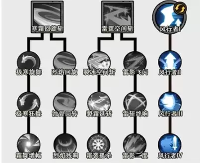 主宰技能前期可以选择裂霜延斩,给目标施加【易伤】DEBUFF;后期流派构筑完成后即可替换为风行斩。