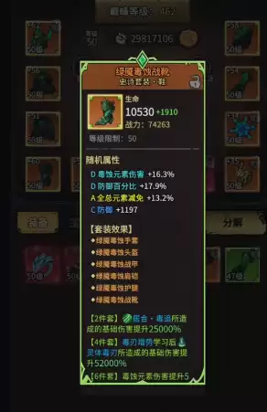 “绿幽毒蚀”六件套是这套流派的核心,作为史诗级别的套装,其属性加成极具优势。凑齐两件即可让基础伤害暴击提升25000%,四件套更能将基础伤害额外提升52000%。若是集齐六件套,不仅能拉满所有伤害加成,还能延长中毒状态的持续时间,并提升暴击率。对于新手玩家而言,无需纠结复杂的搭配,只要凑齐这套装备,就能拥有稳定的输出框架。在武器的选择上,不必执着于稀有度,“无念一闪”和“龙牙”都是不错的选择。它们能有效提升基础攻击力,并能适配毒属性符文,只要附加毒伤效果,就能形成有效的伤害联动。