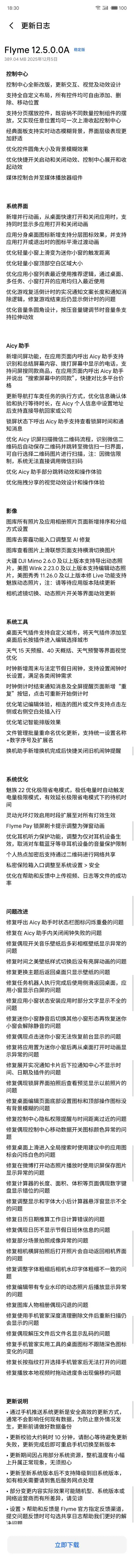 重点是星纪魅族官方宣布,Flyme 12.5系统更新开始全量推送,对于魅友来说,相信已经收到了新版本推送。