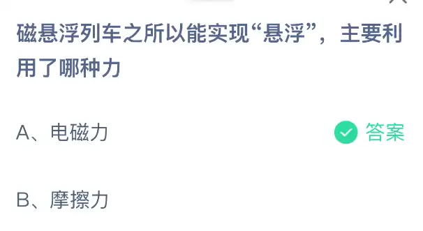 磁悬浮列车如何实现悬浮?电磁力原理详解及支付宝蚂蚁庄园今日答案