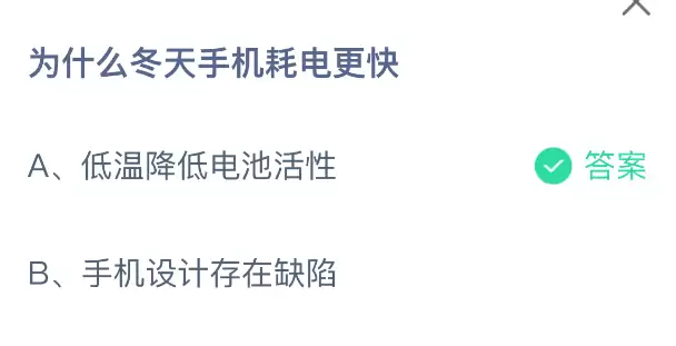手机冬天耗电快真相:支付宝蚂蚁庄园今日答案