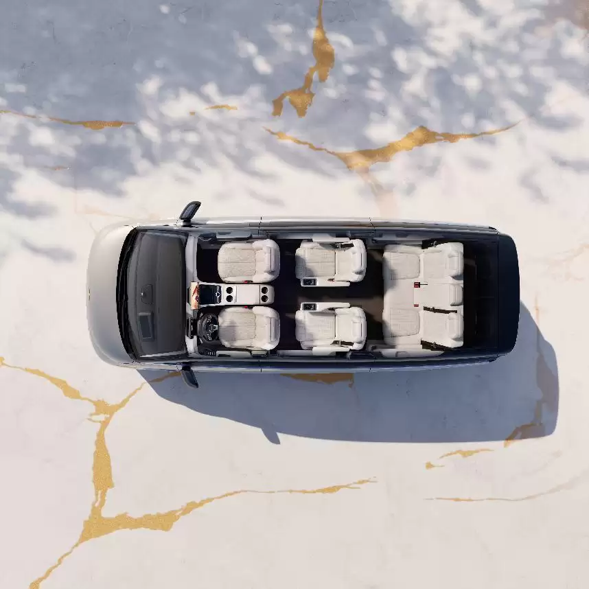 在空间设计上,银河V900首创"叠竖式"增程电驱布局,将前舱动力总成体积压缩至0.4立方米,创造出惊人的91.8%舱内空间利用率。实测数据显示,二排乘客腿部空间达1015mm,三排仍保持1002mm的纵向空间,搭配1100升超大后备厢——可容纳15个标准登机箱。更提供6/7/8座三种灵活座椅布局,满足从商务接待到家庭出游的全场景需求。