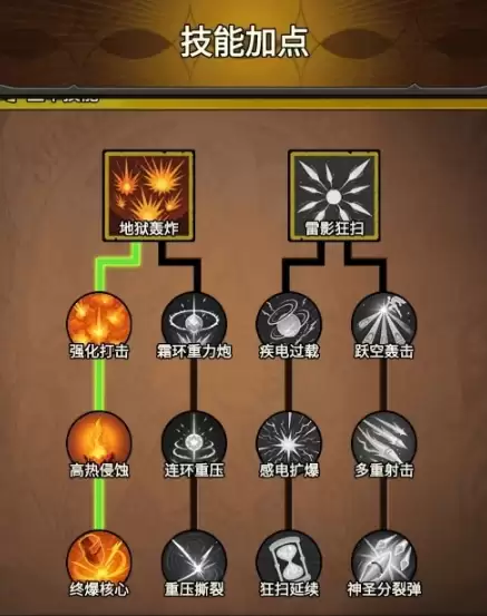 该流派以毒爆溅射和剧毒弹头为核心技能,伤害输出以普攻为主、技能为辅,搭配幽绿魅影套装带来的毒蚀元素伤害提升效果和毒蚀类技能伤害倍率加成,使得角色每次进行普攻时,都能打出相当可观的毒蚀伤害。而且该流派只需点出剧毒弹头,就能让角色在前期具备很强的战斗力,特别适合开荒,后续还能通过武器和符文搭配再次提高毒蚀伤害的上限,装备迭代也极为平滑。若各位想让自己的枪炮兵以一个极为平稳的方式过渡到后期,可选择此流派。