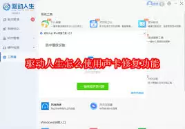 确认声卡存在问题后,只需点击专门的“声卡修复”按钮。此时,驱动人生会根据检测到的问题类型,准备相应的修复方案。
