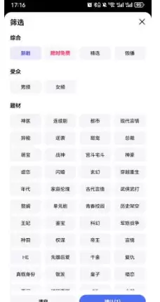 2、如果你想看得更精准,还可以利用顶部的筛选功能,按题材类型挑选自己感兴趣的内容;