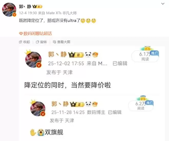 笔者觉得这一快速降价是华为在销量和生态双重压力下的策略调整,通过“高价-降价”模式,不仅迅速提振了需求,也为后续机型定价奠定基础。