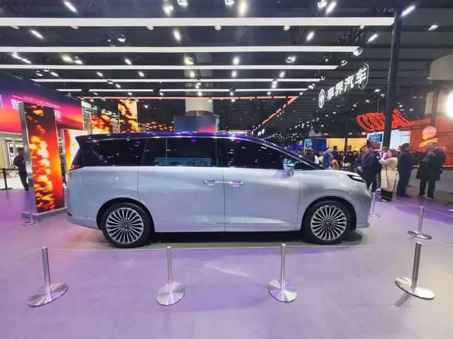 车身侧面线条硬朗,采用双侧电动侧滑门设计,D柱则运用了游艇式风格,稳重与动感并存。车尾部分层次感丰富,配备贯穿式尾灯与高位刹车灯,底部包围与车身同色,进一步增强了整体感。新车长宽高分别为5300mm×1980mm×1850mm,轴距达到3200mm,内部空间表现值得期待。