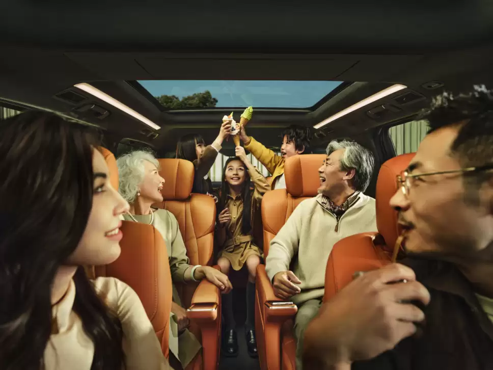 整车设计灵感源自私人飞机,以“陆地湾流”美学理念打造超豪华座舱。5260×2024×1820mm的超大车身尺寸配合3160mm轴距,构建出移动行宫般的空间体验。12层双色车漆工艺与0.258超低风阻系数造型相得益彰,配合分段式长扶手设计,既满足老人儿童上下车便利性,又彰显旗舰MPV的尊贵气场。舱内实际使用长度超3.6米,三排座椅均采用全粒面Nappa真皮包裹,搭配海岛超纤麂皮绒顶衬与15mm澳洲羊毛地毯,营造出云端般的触感体验。