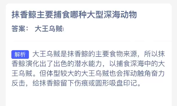 抹香鲸主要捕食哪种深海动物?支付宝神奇海洋今日答案