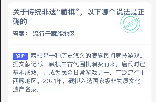 支付宝蚂蚁新村答案:非遗棋类传统说法正解
