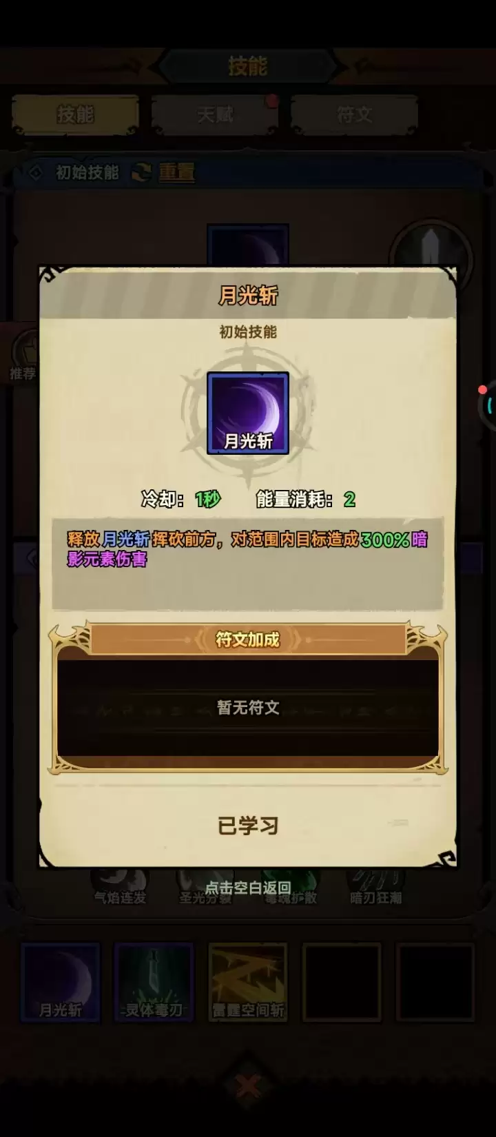 技能加点策略必须严格锁定毒系专精分支。初始技能栏仅保留月光斩、居合、居合追三项;冰霜连斩、居合暗破等非毒系分支不投入任何资源。重点强化居合毒追的攻击次数与单次伤害数值。主宰技能需分阶段配置:前期等级较低、中毒基础伤害不足时,优先选择裂霜延伸,提供易伤减抗效果,显著提升中毒实际收益,助力平稳过渡;后期角色等级提升、属性成型后,切换为风行者,获得移动速度与攻速加成,既优化跑图效率,又增强Boss战中的机动追击能力。