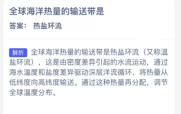 了解全球海洋热量的运输要道吗?【神奇海洋】12月9日的最新题目已经揭晓!正确答案现已公布,点击领取拼图,一同为修复海洋生态贡献力量!今天的正确答案是:【热盐环流】。全球海洋热量的输送带主要是指温盐环流(又称热盐环流),其中大西洋经向翻转环流(AMOC)是最为关键和典型的代表。