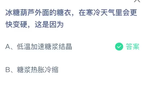 冰糖葫芦糖衣天冷易变硬:成因与支付宝庄园2025答案