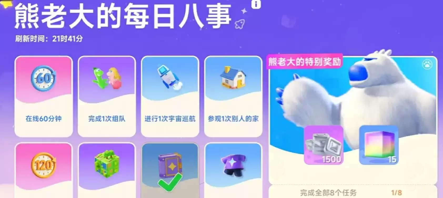 了解NPC角色偏好的任务类型,可以在完成每日心愿的时候提高效率。在设定中晴天的性格是温柔的、治愈的、轻松的互动,所以晴天的心愿大多都是轻量任务,比如提交自己喜欢的食物、参与放松类小游戏、玩一局剧情。如果玩家提前准备好了常用的材料,或者加强了对对应的队伍强度,那么几分钟内就能完成所有的心愿。大型活动、节日版本的更新中出现的特别心愿比普通心愿的奖励更多,例如活动道具、限定货币、角色专属互动动画等,建议优先处理。