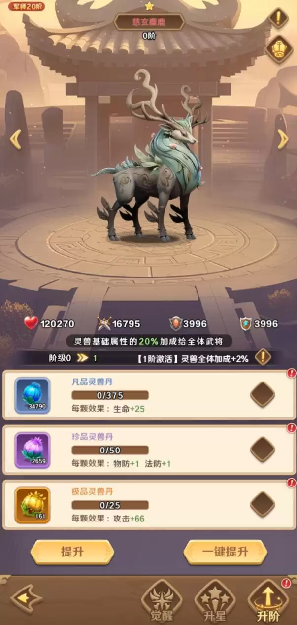 玄慈骊鹿:在游戏前期,它能够构建起强大的防御体系。另外,如果玩家资源有限,也值得对它进行长期培养,毕竟它的实力相当不俗。对于玩家而言,它每回合开始就能为友方吸收能量,从而使自身获得15%的护盾。此外,它还能让己方队伍有30%的概率触发复活效果。不过玩家此时也需要注意,要进行合理的搭配,同时也要根据自身的资源和实际情况,选择合适的灵兽进行培养。