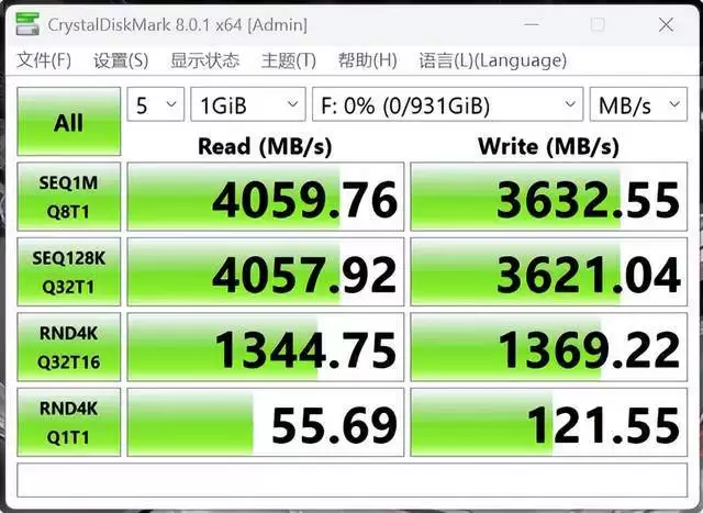 在搭配ROG魔霸9 MINI迷你电脑的USB4接口测试时,顺序读取速度达到4059.76MB/s,顺序写入速度同样高达3632.55MB/s,这样的成绩表现轻松满足素材备份以及在盘内进行图片直修、视频编辑等等工作流高效运行。