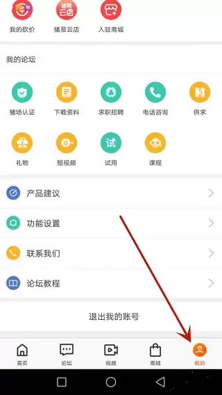 1、点击打开猪易通App,然后点击应用界面右下角的“我的”入口。