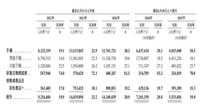 2024年、2024年、2024年、2025年1-6月,传音控股的毛利率分别为19.9%、23.2%、20.9%、19.0%。据招股书,近期毛利率下降的原因主要是新品发布时间影响消费者行为、功能手机价格下调和用户对功能手机需求减少等。