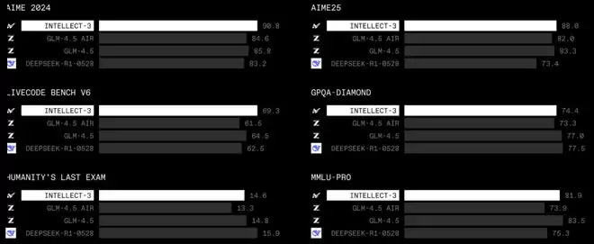 INTELLECT-3 也证明:即使不是大实验室,也可以训练出与顶尖团队同台竞技的模型。