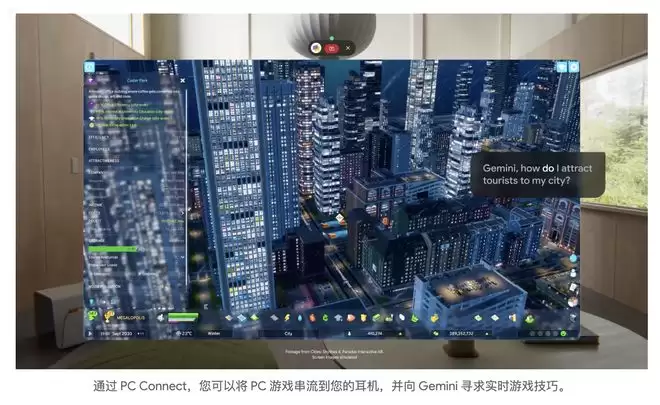 此次发布会为这款头显推送了系统更新,新增了虚拟显示器、数字分身及旅行模式三大功能。其中数字分身和旅行模式对标的是苹果的类似功能。虚拟显示器允许用户将笔记本电脑画面直接投射到头显中,方便在虚拟空间中办公等;此外,用户也可以向Gemini咨询游戏技巧。