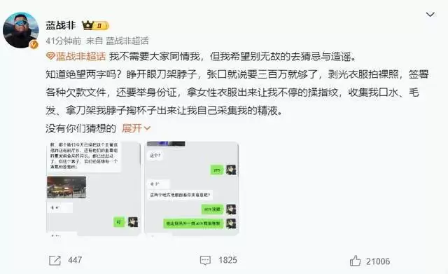 蓝战非回应绑架事件:现场情绪崩溃,否认自导自演闹剧