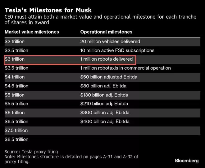 根据彭博社的统计,机器人也关乎马斯克的「万亿薪酬计划」——