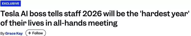 在面向全体员工的内部会议上,特斯拉AI软件副总裁Ashok Elluswamy向Autopilot和Optimus团队发出预警:2026年,将是他们「职业生涯中最艰难的一年」。
