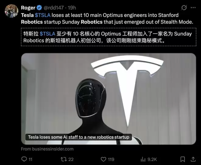 据LinkedIn数据分析,此初创目前至少有10名前特斯拉员工,其中不少曾是人形机器人Optimus和自动驾驶项目的核心骨干。