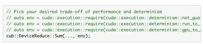 作为 CUDA 13.1 的一部分, NVIDIA CCCL 3.1 提供了两个额外的浮点确定性选项,您可以根据这些选项在确定性和性能之间进行权衡。