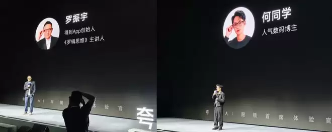 在今天的发布会上,得到App创始人罗振宇和知名数码博主何同学都来到了现场,分享了他们佩戴夸克AI眼镜S1的感受,何同学提到,这是他目前带过的体验最好的AI眼镜。