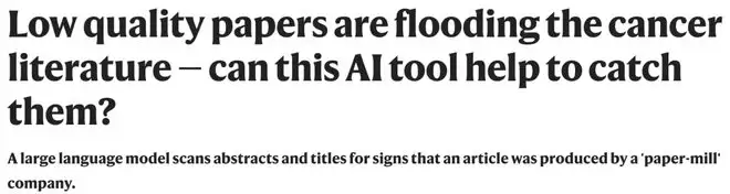 据《Nature》的一篇文章报道,癌症研究领域有超过25万篇文章被AI 工具定性为与「论文工厂」模式相似。