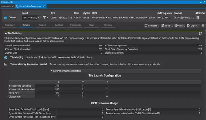 NVIDIA Nsight Compute 2025.4增加了对分析CUDA Tile Kernel的支持。