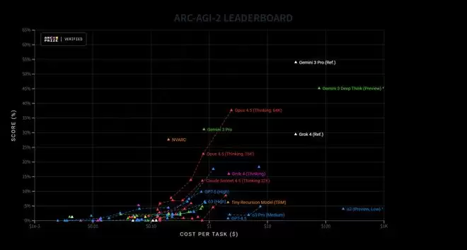 值得一提的是,他们的方案是在ARC-AGI-2基准测试背后的同一数据集上进行评估的。
