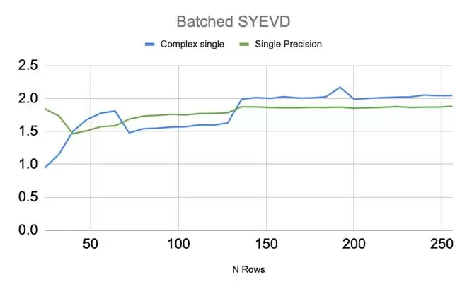 CUDA13.1继续改进用于特征值分解的批处理SYEVD和GEEV API,提供了性能增强。