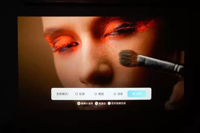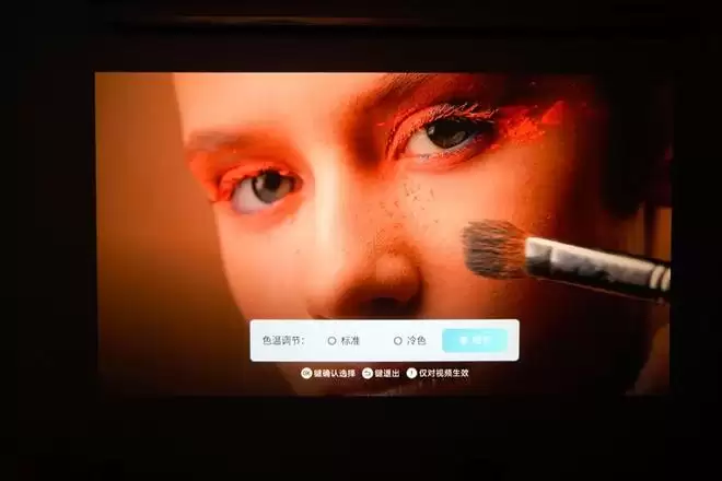 我们实际测试中,发现冷色和暖色选项对画面色彩的影响都较为明显,建议用户只有在房间内有杂光或开启夜灯时,再使用这项功能对画面颜色进行补偿,正常在黑暗环境下观影时,保持默认的标准色温就好。