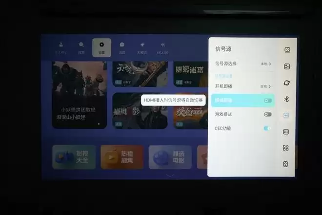 哈趣H3 Ultra投影仪支持自动切换至HDMI信号,也支持开机自动选择HDMI源,方便使用外接电视盒子或游戏级的用户,CEC功能可以让用户使用外界设备的遥控器对投影仪进行控制。