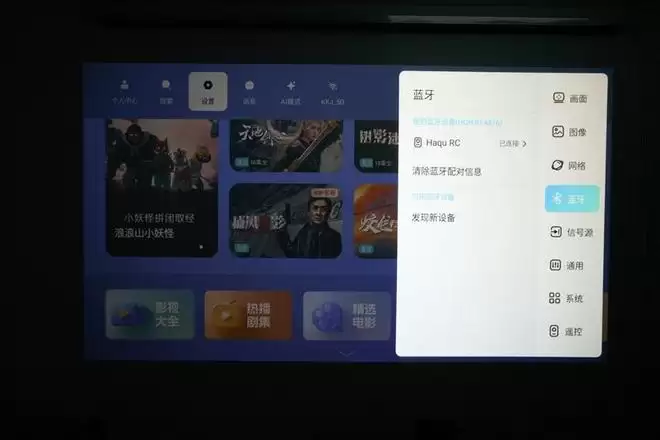 哈趣H3 Ultra投影仪的蓝牙遥控器使用两节7号电池,连接投影仪之后还可以在投影仪的遥控设置页中直接查看电池电量。