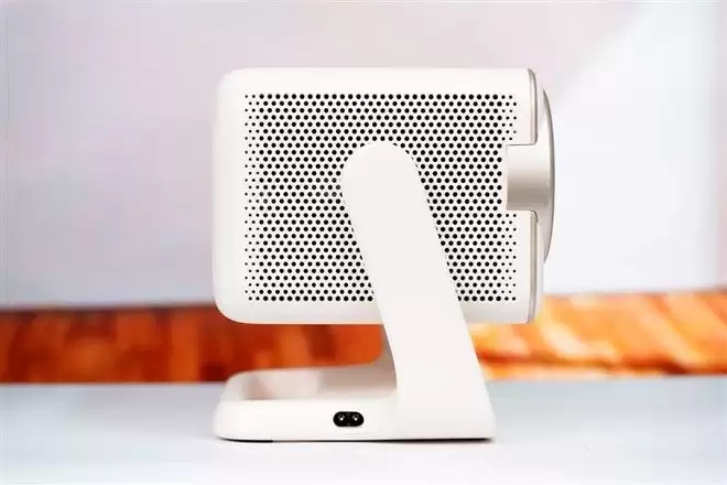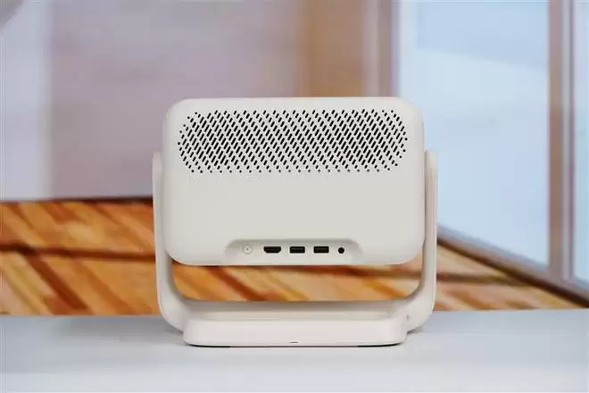 哈趣H3 Ultra投影仪机身侧面,可以看到转轴下方有大面积的扬声器开孔。