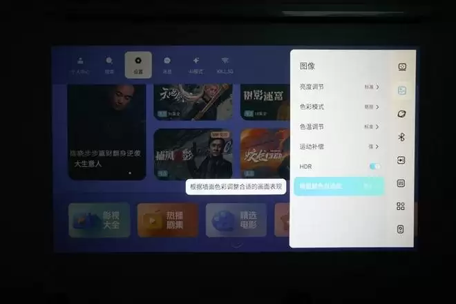 哈趣H3 Ultra投影仪也提供了墙面颜色自适应功能,对于这个价位的投影仪来说,很多用户并不会专门配备幕布而是直接在墙面上投影,哈趣H3 Ultra投影仪的墙面功能自适应功能可以自动对墙面颜色进行测量补偿,使画面颜色更加准确。