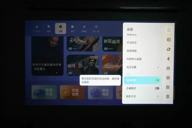 哈趣H3 Ultra投影仪也提供了智能感应护眼功能,当有人走进投影画面中时,就会自动降低投影亮度,避免强光直接照射眼睛,更加安全,家中有小朋友乱跑也可以放心使用。