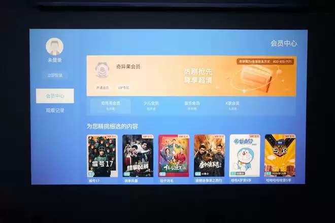 哈趣H3 Ultra投影仪的内容账号系统深度整合爱奇艺的银河奇异果,可以直接使用爱奇艺账号登陆,并使用爱奇艺会员,观看更多会员内容。