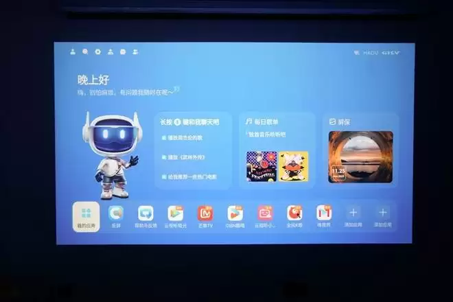 在AI桌面上,用户可以直接通过遥控器上的麦克风键,和AI智能体进行自然对话,哈趣H3 Ultra投影仪全面接入AI大模型,理解语义,越用越懂你。