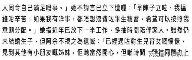 谈及立遗嘱的理由,余诗曼并未避讳。