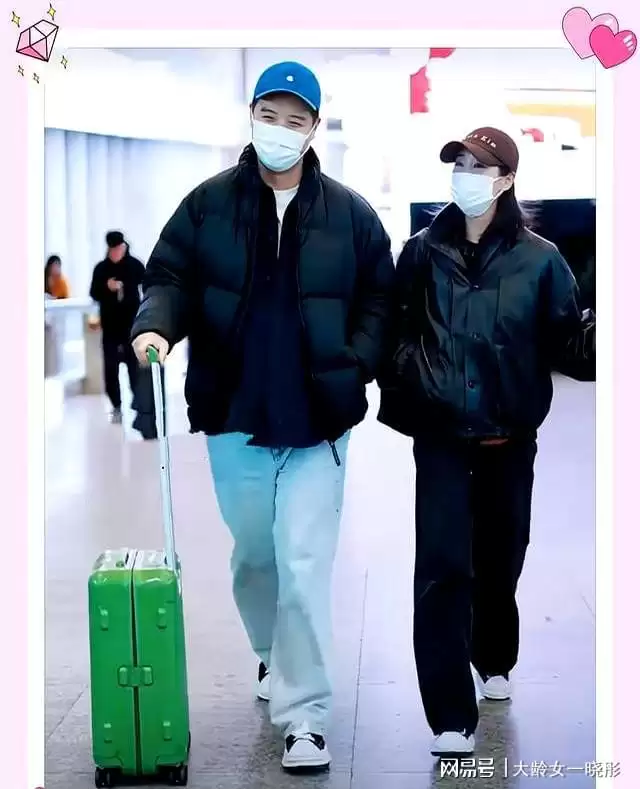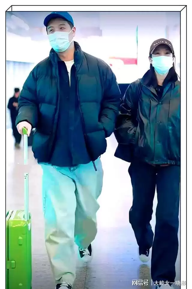 他推着的绿色拉杆箱在两人之间显得格外醒目,似乎装载着他们的旅行回忆与共同的故事。