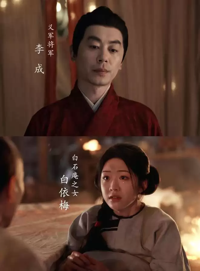 饰演一位生逢乱世的义军将领,束发利落、红袍曳地,没披甲的时候,都有一股肃杀之气。