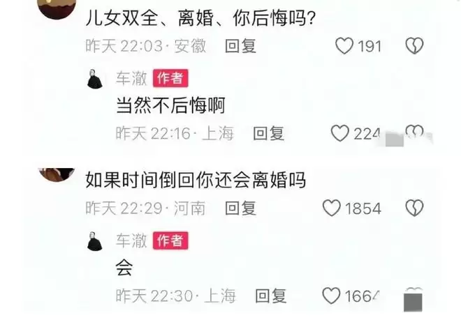 没想到车澈的回答是不后悔离婚,时间倒回也会选择离婚。其实外人无法窥视别人婚姻的全貌,既然车澈如此决绝的回答,确实是一点情分都不留了。